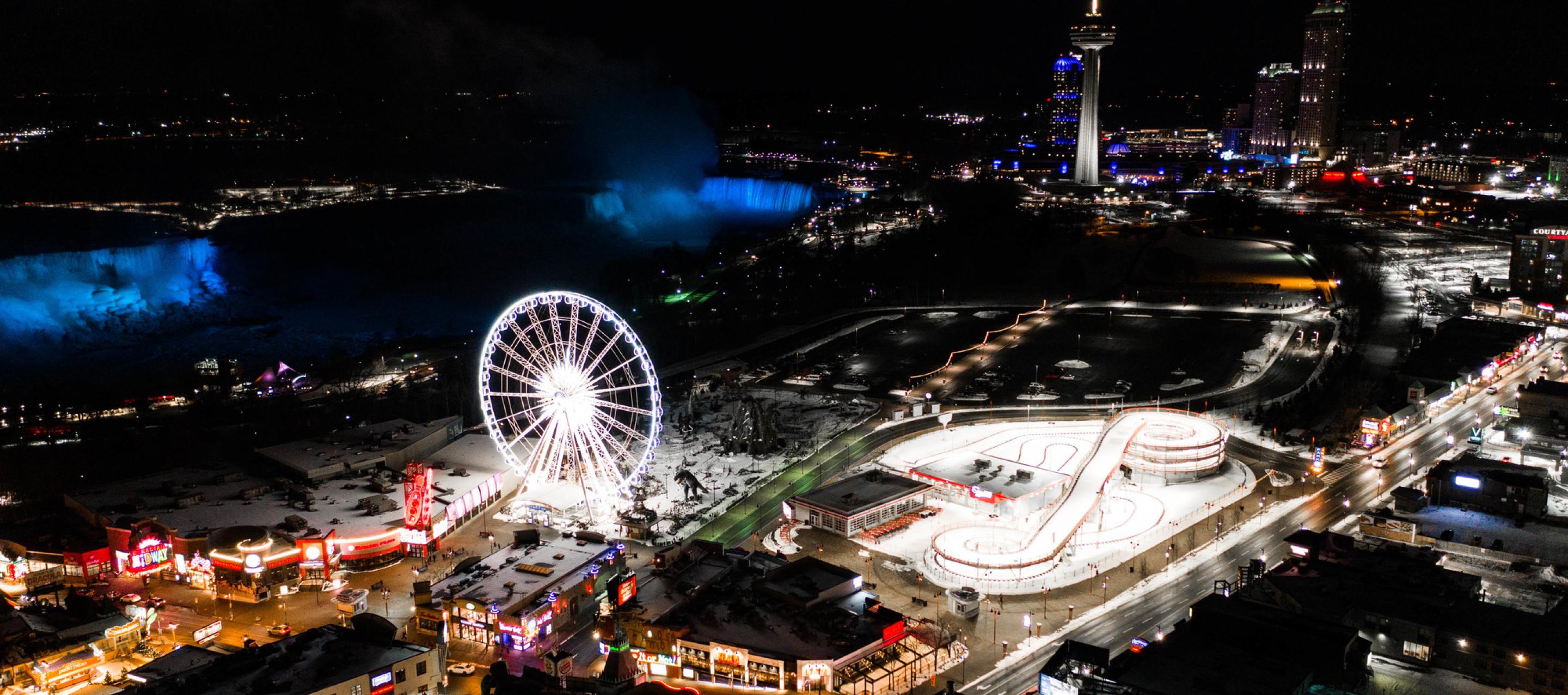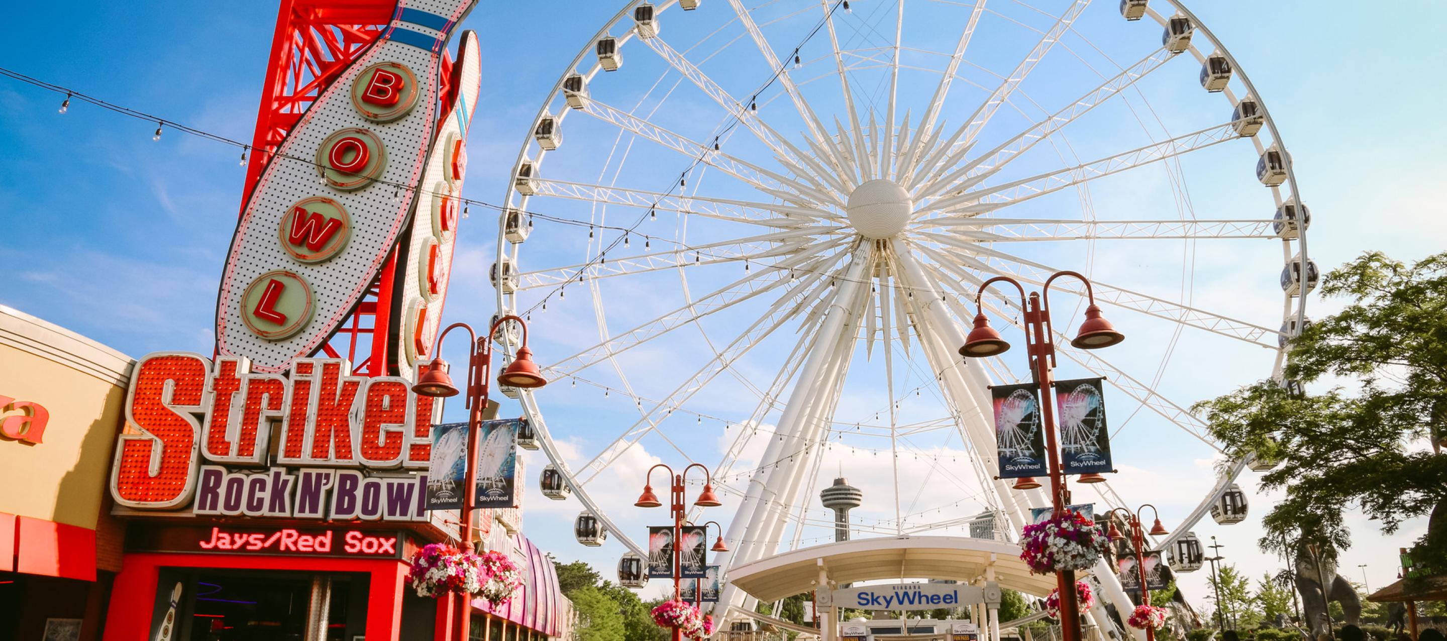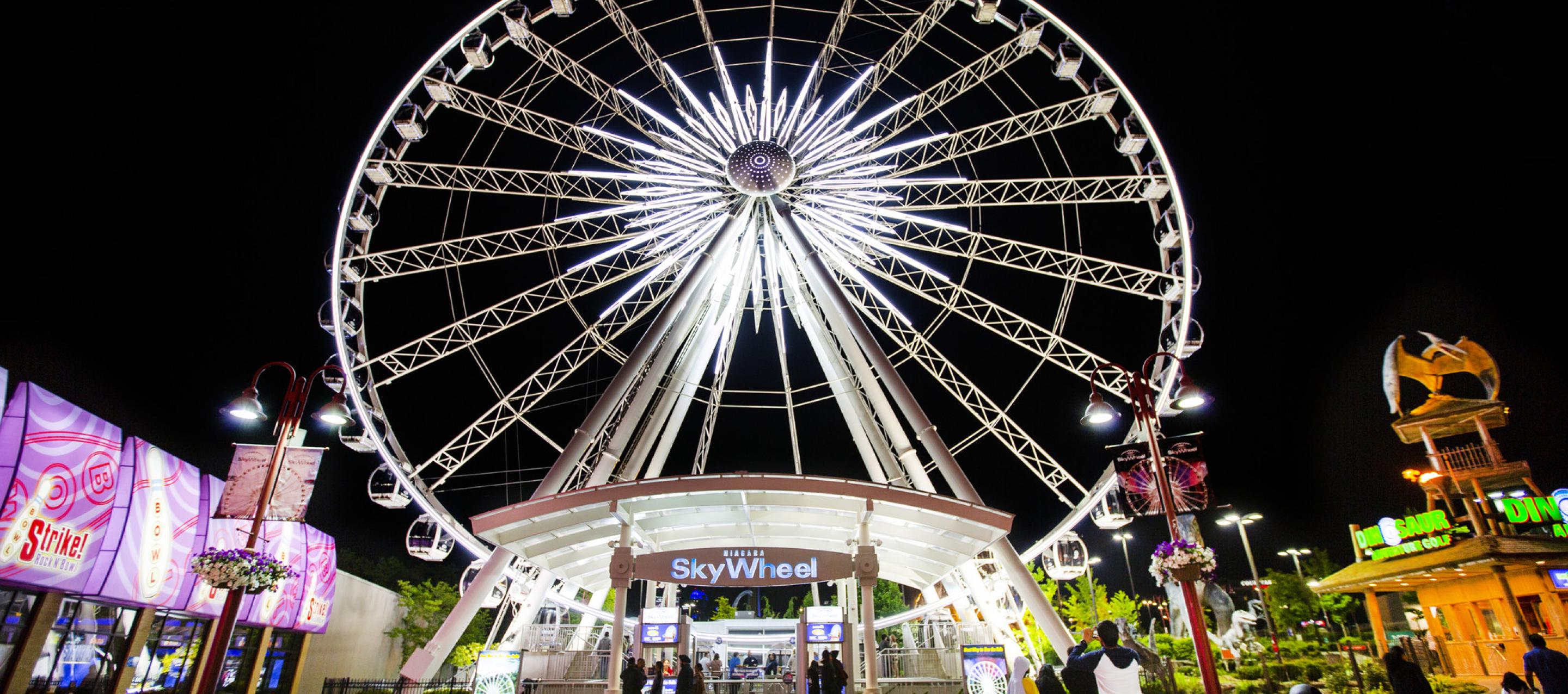 Are you ready for a unique sightseeing opportunity with breathtaking views of the Falls and beyond? Then head on down to Clifton Hill and take a ride on Canada's largest observation wheel, the Clifton Hill SkyWheel. Towering 175 feet (53 metres) over the Niagara Falls horizon, the Clifton Hill SkyWheel is the most exciting way to see Niagara Falls. From this vantage point you will be treated to memorable views of the Horseshoe and American Falls, the Niagara River and other landmarks.