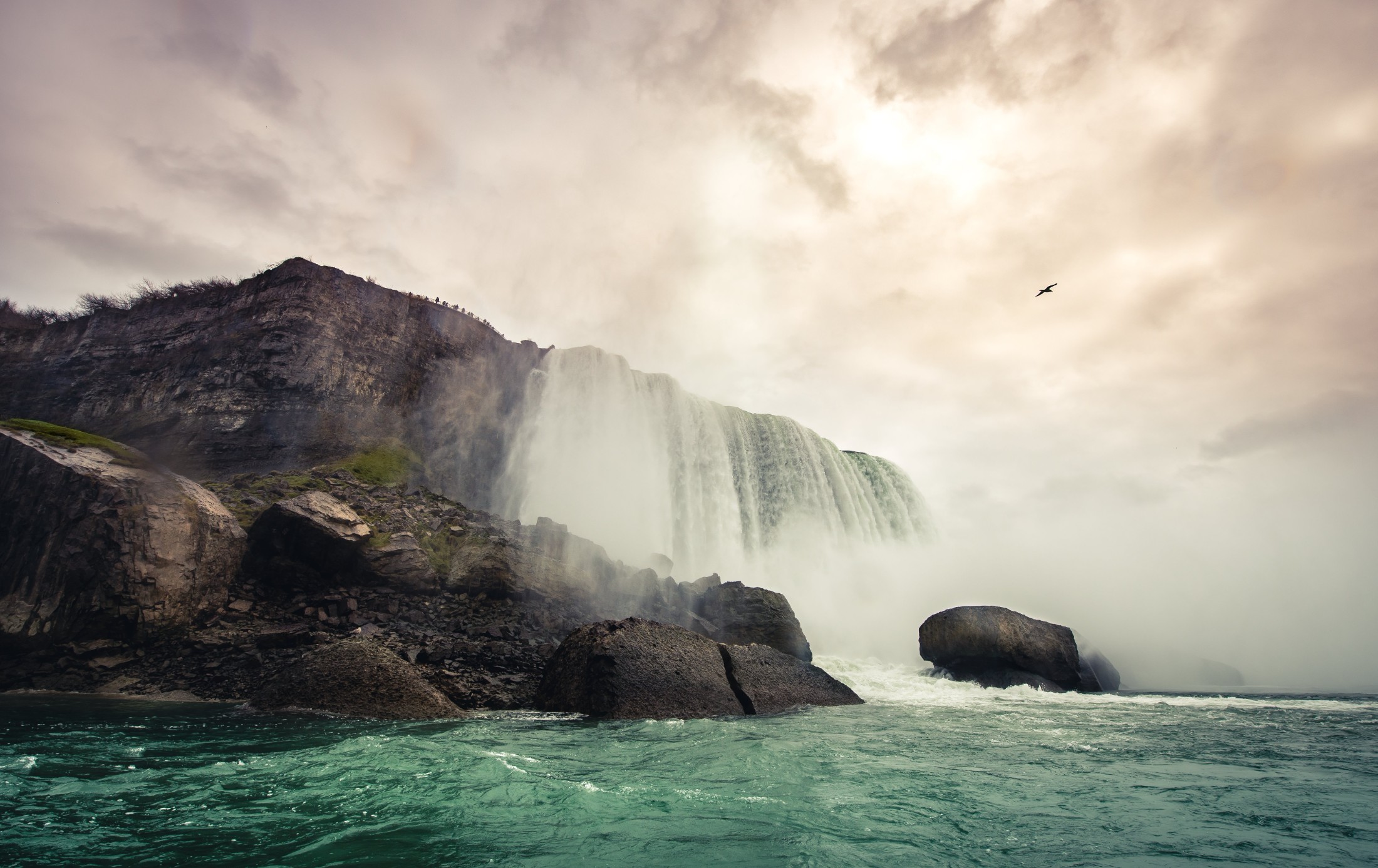 … Journey Behind the Falls, you`ll experience the awesome spectacle of one-fifth of the world's freshwater crashing down to the basin below. … travelling 65 kilometers per hour! Your Journey Behind the Falls visit will take 30 to 45 minutes and in the spring and summer months, … lead and to the Cataract Portal and the Great Falls Portal which is one-third of the way behind the massive sheet of water. Then you walk on …